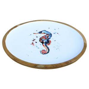 Bord Zeepaardje, rond, mangohout met emaille, Ø: 25,5 cm, H: 2,5 cm