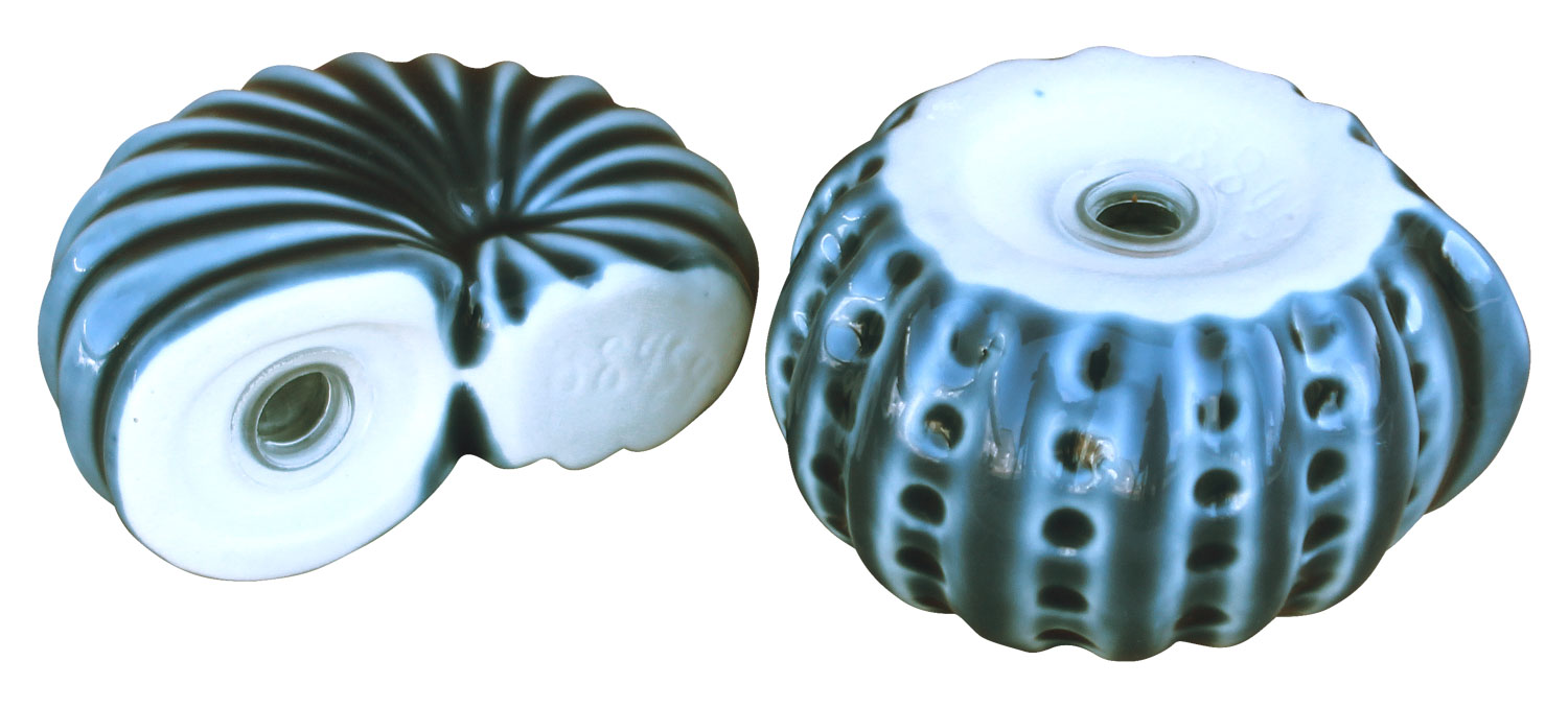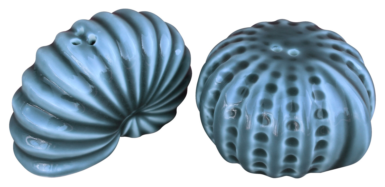 Peper en zoutstel Schelp, aardewerk gelakt blauw 8×3,7×5,8 / 7x7x4,7, set/2